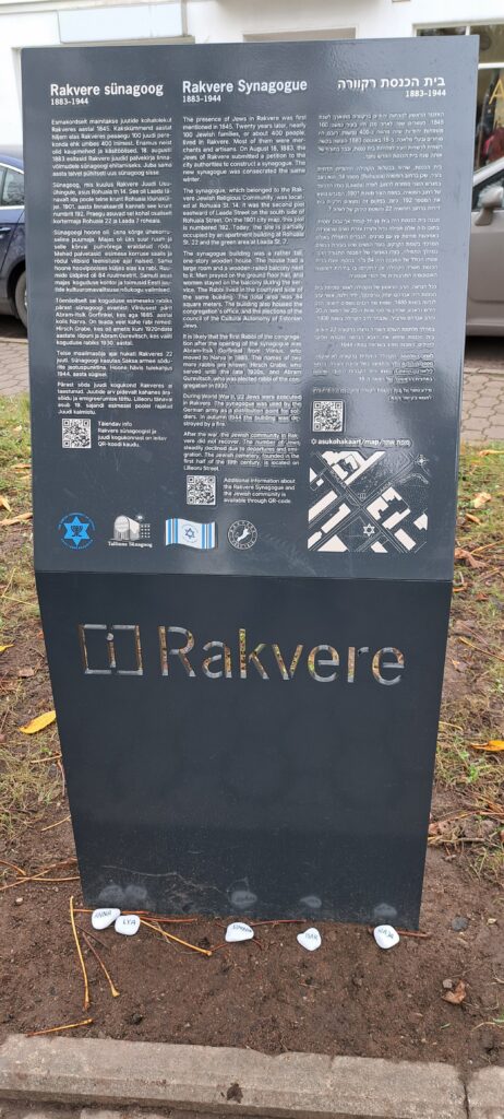 Kolmapäeval, 12.novembril 2025.a avati Rakveres Purskkaevu pargis Laada ja Roheaia ristmiku juures mälestusstend, mis märgistab endise Rakvere sünagoogi asukoha Rohuaia tänaval. Kohal olid Rakvere linnapea Triin Varek, Rakvere volikogu esimees Mihkel Juhkam, Eesti Juudi Muuseumi juhatuse liige, Eesti Juudi Kogukonna nõukogu liige vandeadvokaat Alla Jakobson, Eesti pearabi Šmuel Kot, Eesti Juudi Muuseumi juhataja Gennadi Gramberg, Rakvere Linnavalitsuse ametnikud ja linnaelanikud.