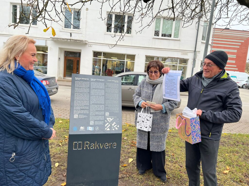 Linnapea Triin Varek avaldas oma heameel mälestusstendi avamise puhul. Rakvere linn hoolitseb oma pärandi eest. Juudi kogukond on osa sellest. Sünagoogi asukoha jäädvustamine on näide linna mitmekesisusest. Linnapea koos Alla Jakobsoni ja Šmuel Kotiga avasid mälestusstendi. Alla Jakobson tänas linnapead ja linnavalitsust mälestusstendi rajamise eest. Ta juhtis tähelepanu sellele, et kui väike kogukond oli võimeline ehitama endale sünagoogi, siis näitab see, kui elav ja aktiivne oli siin kogukonna elu. Pearabi luges palve „Šma Israel“ ja mälestuspalve. Tseremoonia lõpus asetasid linnapea, volikogu esimees, linnakunstnik Marju Püümets, kes kureeris stendi rajamist linnavalitsuse poolt, ja kogukonna esindajad kivikesed, mille peal on kirjutatud holokaustis hukkunud Rakvere juudi perekonna Taichi eesnimed.