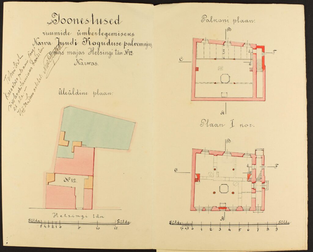 Narva sünagoogi joonised. Чертежи Нарвской синагоги. Drawings of the Narva Synagogue.