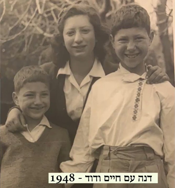 Дана со своими сводными братьями Хаимом (справа) и Давидом. Видео משפחת דונדה מקיבוץ כפר גלעדי